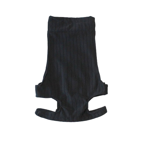 Top de punto acanalado negro con estrella de algodón negro cosida, pieza de cuello alto.